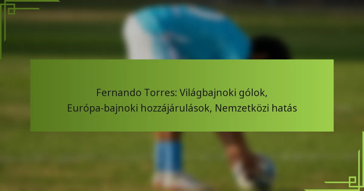 Fernando Torres, a nemzetközi futball meghatározó alakja, kulcsszerepet játszott a spanyol válogatottban, kiemelkedő teljesítményeivel a nagy tornák során. Egyetlen világbajnoki gólját a 2006-os FIFA Világbajnokság alatt szerezte, míg az UEFA Európa-bajnokságokon, különösen 2008-ban és 2012-ben, tett hozzájárulásai alapvetőek voltak Spanyolország történelmi sikereihez. Torres képessége, hogy kulcsfontosságú gólokat szerezzen és lehetőségeket teremtsen, megszilárdította örökségét az európai futballban.